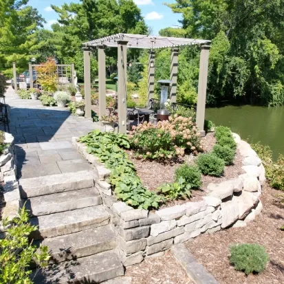 Hardscaping focuses on durable surfaces like paver driveways, retaining walls, patios, and flagstone walkways built using professional base preparation. Materials such as BelgardPro systems and Rochester concrete products help support long term performance. Each installation prioritizes stability, proper drainage, and visual consistency across the landscape.