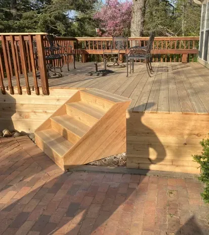 Decks add elevated outdoor living space that connects to your home. We build using composite or natural wood materials, both installed over properly spaced joists and secure footings. Railing systems meet code while matching your home's style. The construction methods prevent water damage and structural issues common with poorly built decks.